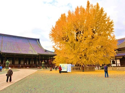 - 西本願寺大銀杏,樹齡已達400年,枝葉延伸達30公尺,相當壯觀。